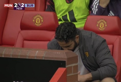 随后,直播镜头拍到,阿莫林坐在替补席上盯着地板想考,过了一段时刻后,他来到场边,延续筹议着比赛。